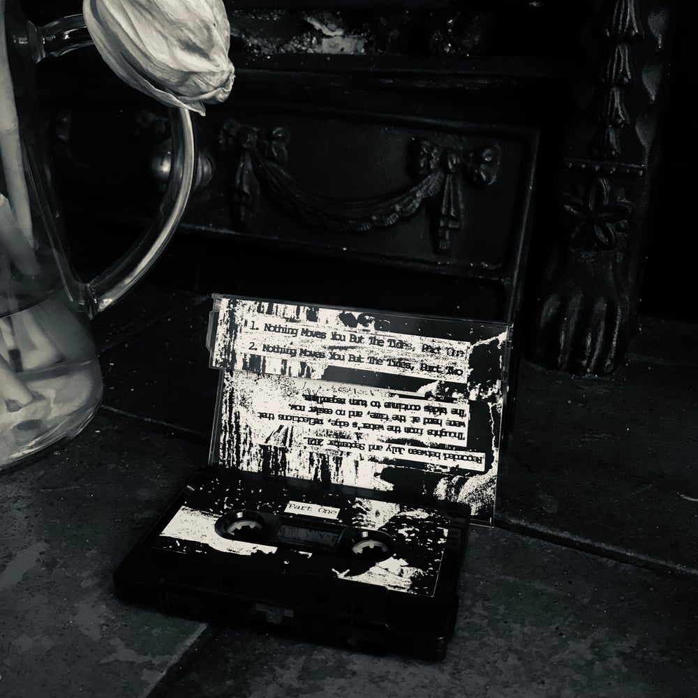 Nothing Moves You But The Tides is a long form work, and hour long piece split across two sides of tape. With cassette tape field recordings of the Sussex coast line forming the basis of the piece, guitar and synth fade in and out as words spoken and whispered appear throughout. Thoughts captured whilst staring at the sea.