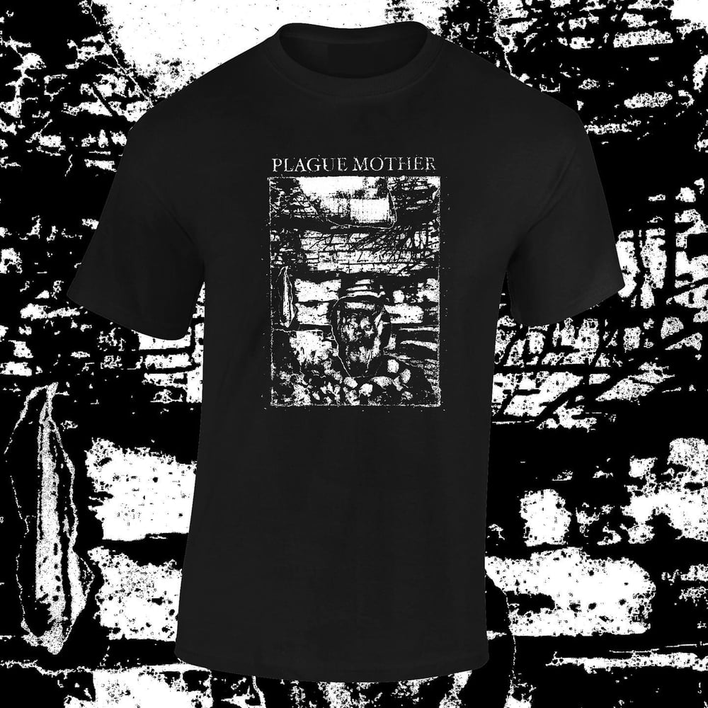 Exclusive Plague Mother shirt with artwork collaged from the artwork for the Knifedoutofexistence tour split and Calcified Stolen Time.
